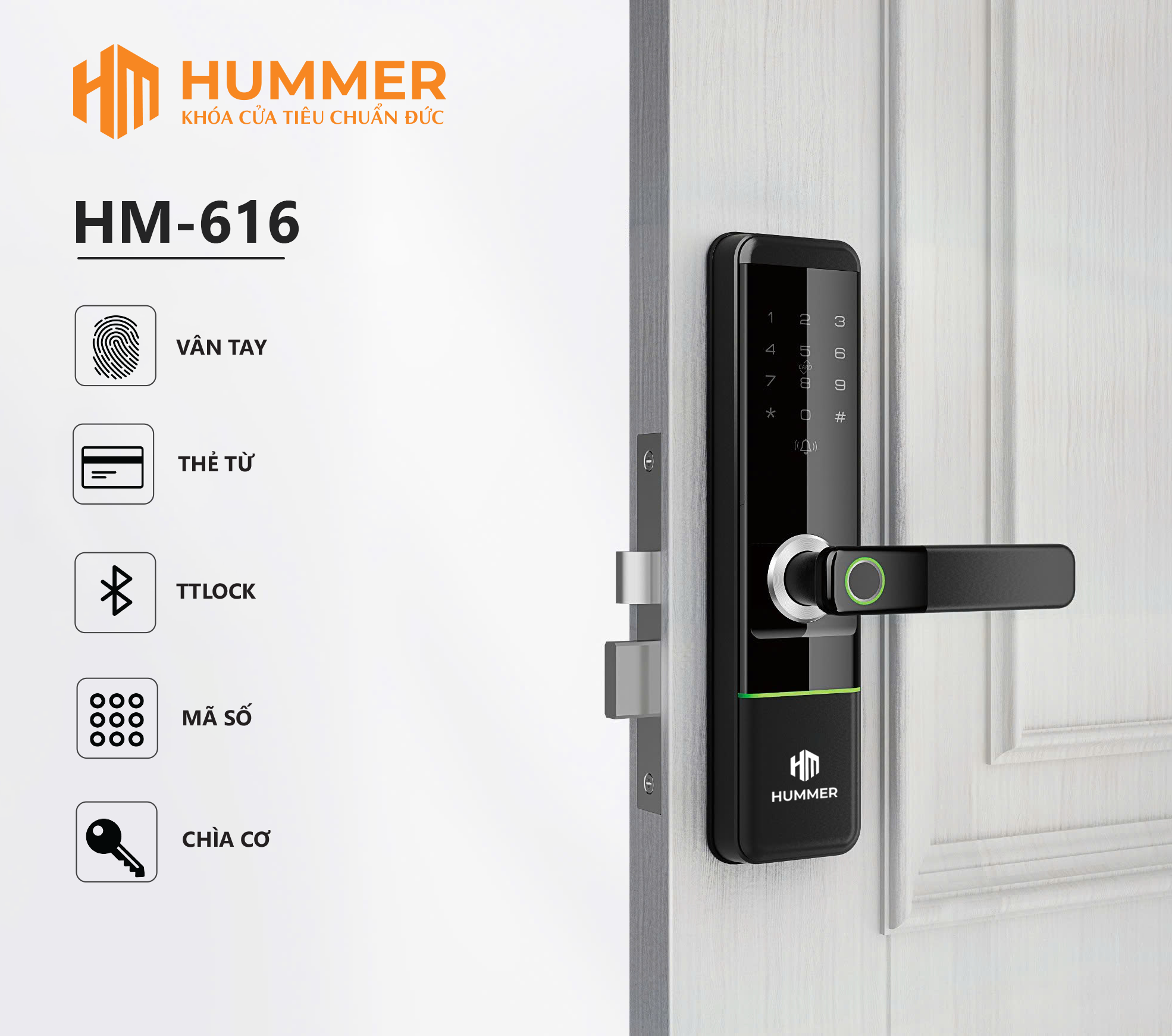 Khóa cửa vân tay HM-616 từ thương hiệu HUMMER mang đến giải pháp bảo mật hiện đại & tiện ích tối ưu cho mỗi ngôi nhà. Với công nghệ tiên tiến và thiết kế sang trọng, HM-616 không chỉ mang lại sự an toàn mà còn làm đẹp thêm không gian sống.